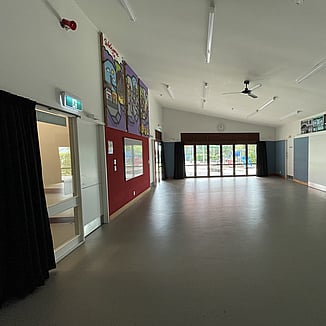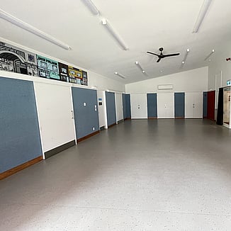 Trestle tables and chairs stored within the room
