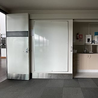 Large permanent whiteboard.